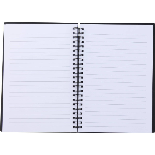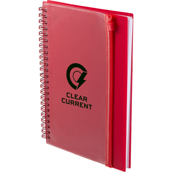 This eco-friendly spiral notebook is the perfect blend of practicality and sustainability. Made with a 100% recycled polypropylene cover, it includes a clear front pocket for storing documents, pens, and other small essentials. Featuring 70 sheets of recycled lined paper and a sturdy spiral binding for easy flipping, this notebook is ideal for note-taking, meetings, or daily organization. A great promotional product, it can be custom decorated to showcase your brand while supporting environmental nonprofits through 1% For The Planet.