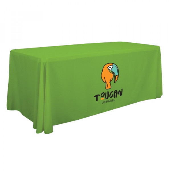 Want to make a good impression at your next trade show? Break out the 6' trade show table cover. It covers three sides of the table and leaves open the back so you have easy access to that storage space. It comes in 15 shades of a high-quality, flame retardant polyester poplin fabric. Just wash it and dry it and your table cover will last for years to come. Do not iron or dry clean.::Sit comfortably behind your table::Covers 3 sides of the table with a 9 inch overhang in the back::Easy access for storage under table:::Machine washable on gentle cycle using mild detergent. Do not dry clean and do not iron.::Now available in Full Color Imprint