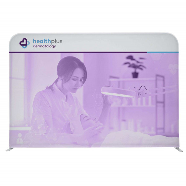 Make a lasting impression at events, trade shows, and retail environments with this sleek and versatile tabletop display. Designed to bring the same visual appeal and functionality as a full-size straight wall in a more compact form, this display stands approximately 49.5 inches tall—perfect for maximizing visibility without overwhelming your table space. The high-quality graphic is produced using vibrant dye sublimation on recycled polyester knit fabric, delivering rich colors and sharp detail that draw attention from every angle. As a promotional product, it can be fully customized or branded to showcase your message, logo, or design with professional impact. Its double-sided graphic ensures your display looks great from both the front and back, while the pillowcase-style cover slips easily over the frame for a smooth, tailored appearance. Built with a lightweight aluminum frame and user-friendly push-button connectors, setup is quick and hassle-free. Whether used alone or combined with additional displays using the included connector, this tabletop solution offers flexibility, sustainability, and style in one smart package.