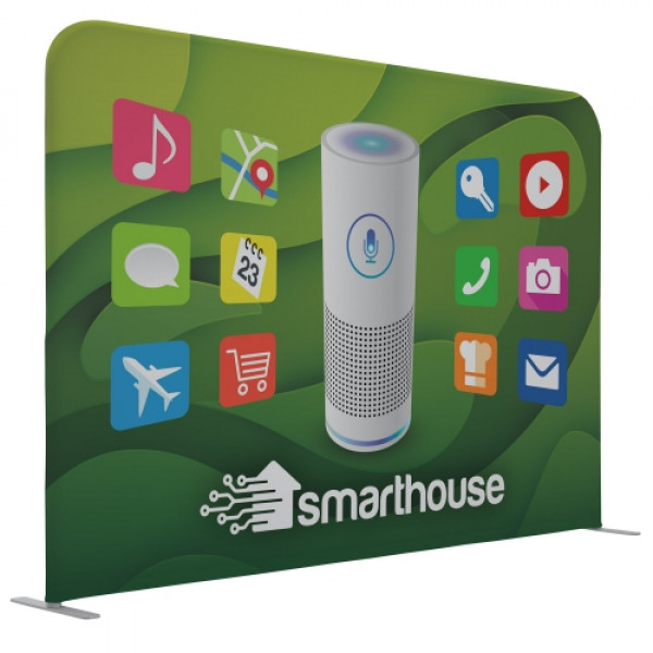 The EuroFit Straight Wall is one of our most popular displays, and it's now available in this tabletop size.::This display is approximately 49.5" tall::Your artwork will be dye sublimated on polyester knit::Double-sided graphic cover is viewable from both the front and back of the display::Graphic cover slips over the frame like a pillowcase::Fabric contours to the frame for a form-fitted look::Lightweight aluminum frame::Joints are labeled for step-by-step frame assembly::Push-button connectors make it easy to assemble::Hinge together multiple EuroFit displays with the included EuroFit Connector (US Patent #9637963)::The tabletop version of the Straight Wall has a narrower foot than the floor display so it takes up less space on a table::Imprint Method: Full-Color Dye Sublimation::Double Sided Graphic
