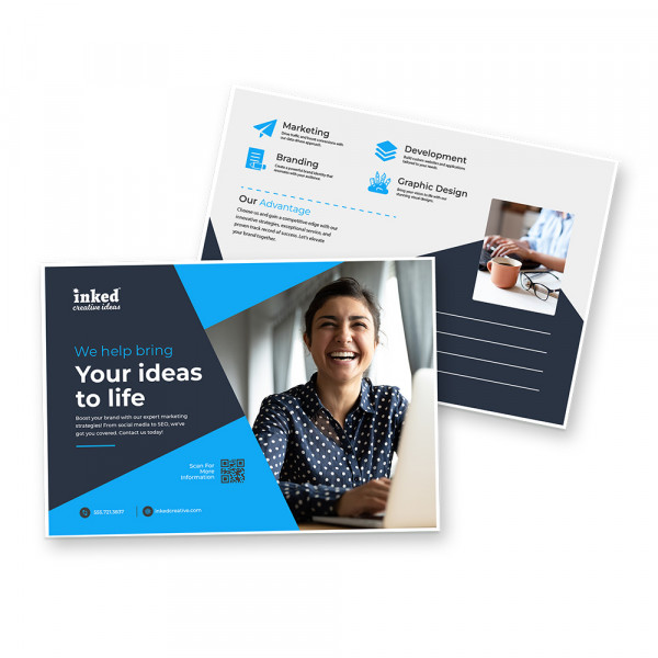 Our promotional postcards are the perfect way to showcase your brand and message to potential customers. With high-quality printing and a variety of design options, these postcards will surely make your brand pop.