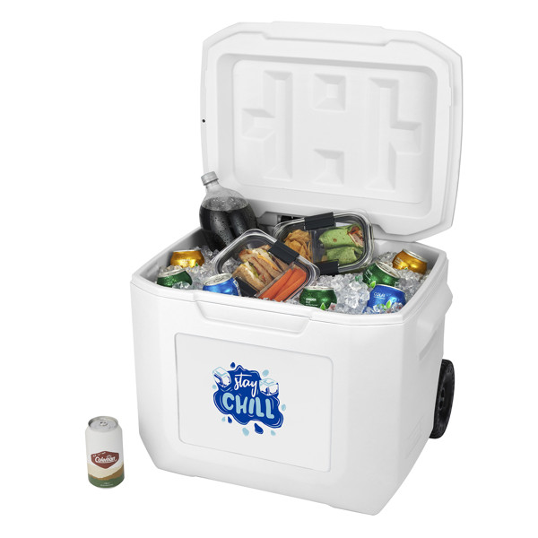 Transport your refreshments with ease using the Coleman® 60-Quart Wheeled Cooler. This cooler is designed for convenience, featuring sturdy wheels and a telescoping handle, making it perfect for picnics, barbecues, and outdoor events. With a generous 60-quart capacity, it can hold up to 95 cans, ensuring you have plenty of space for all your favorite beverages and snacks.