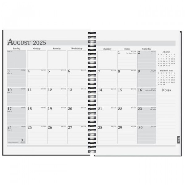 - Monthly calendar view with white offset sheets printed gray on both sides
