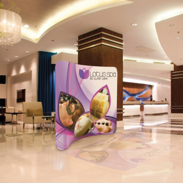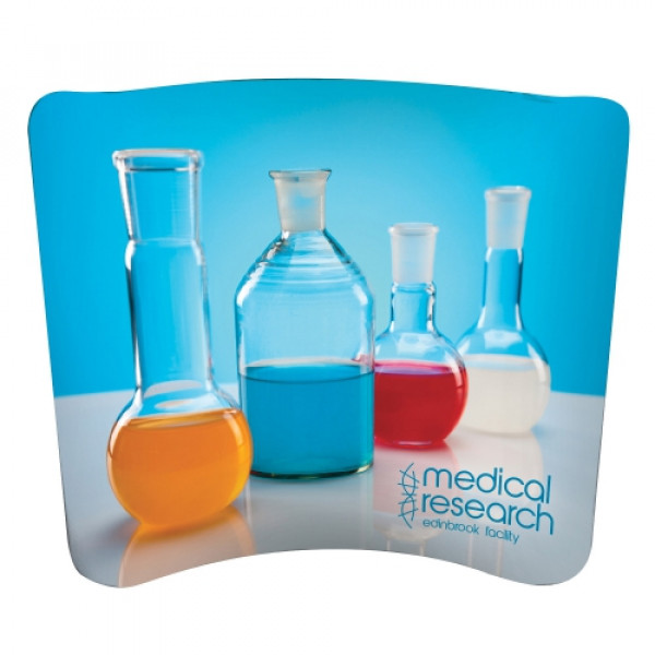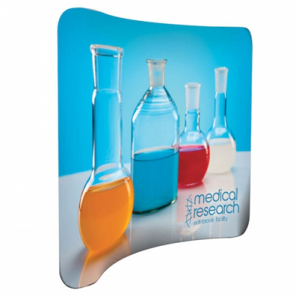 This double-sided display is lightweight and stylish.::This display is approximately 8' wide::Artwork is dye sublimated on polyester knit::Graphic cover slips over the frame like a pillowcase, then zips shut::Double-sided graphic cover is viewable from both the front and back of the display::Heavy-duty zipper keeps the graphic cover secure and taut::Fabric contours to the frame for a form-fitted look::Lightweight aluminum frame::Joints are labeled for step-by-step frame assembly::Push-button connectors make assembly a snap::Hinge together multiple EuroFit displays with the included EuroFit Connector (US Patent #9637963)