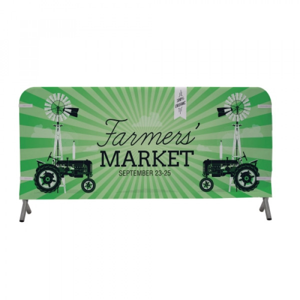 Transform any event barricade into a prime advertising opportunity, and maximize your impact by featuring a different design on each side.::Designed for 3' x 8' barricades (barricades not included)::Artwork is dye sublimated on two-way stretch fabric::Double-sided graphic cover is viewable from both the front and back of the display::Cover is curved and open along the corners::Hook-and-loop fasteners keep it secure