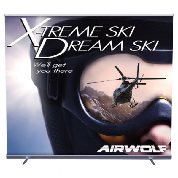 Create an impressive backdrop with this ultra-wide retractable banner.::Two-person setup::Heavy-duty base is available in silver only::Two swivel feet for stability::Two shock cord poles support the banner::High-tension base springs keep the banner taut::Banner attaches with snap rail on top and banner tape on bottom::Artwork is printed on Titan™ 13 oz. smooth scrim vinyl::Banner is single-sided::100 RCAT rating