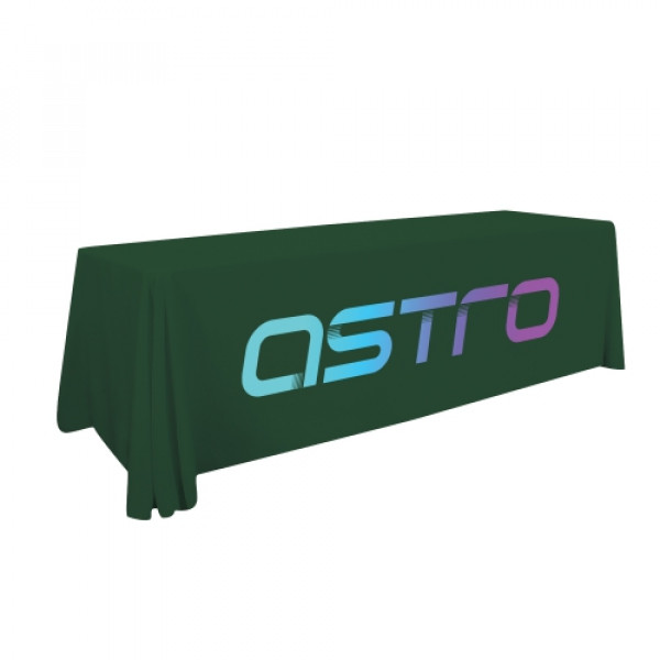 These cost-effective throws are laser-cut for a crisp, finished edge.::Heat-treated edges will not fray or unravel::Printed on polyester poplin::Draped corners::Flame retardant treated (FR rated for exhibit halls)