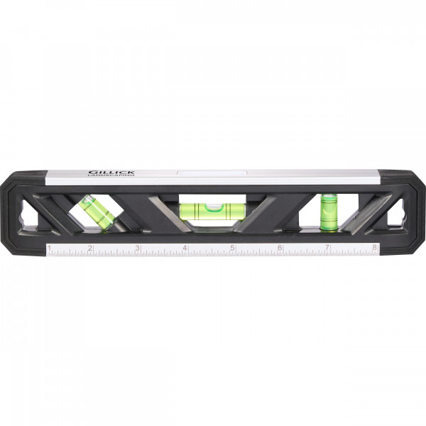 This 9-inch Recycled Magnetic Level is a feature-packed tool that can handle any size job. Crafted from heavy-duty recycled ABS plastic, it includes three different angle levels: vertical, horizontal and 45 degrees, and includes a top-view window that makes it easy to view from multiple angles. Magnetic, V-groove strip for hands-free use and secure fit on pipe and conduit. Printed metric scale for easy measurements up to 20cm. 9"L x 1-3/4" W.