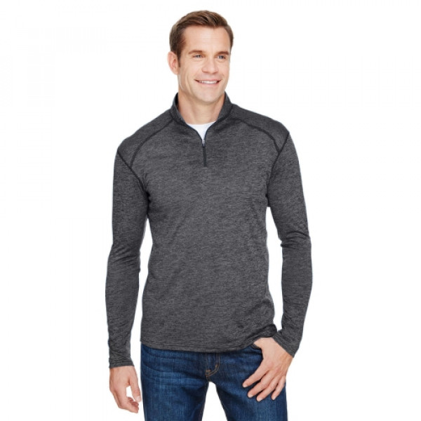 Fabric:::4.3 oz., two-tone polyester jersey::Moisture management for all season comfort::Stain-release and odor-resistant for easy care::Snag resistant for durabilityFeatures:::8.5" zipper::Lined collar and placket for support, strength and crisper look::Tonal stitching on shoulder::Raglan sleeve for maximum mobility