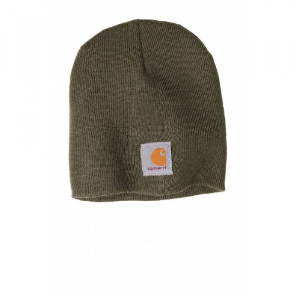 Warm and snug, this beanie comes in enough colors to wear a new one every day of the week.::100% acrylic,rib knit fabric::Traditional beanie styling::Carhartt label sewn on front