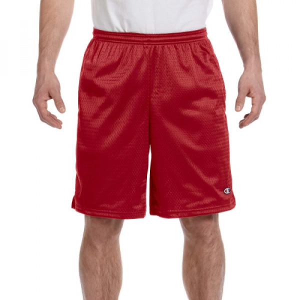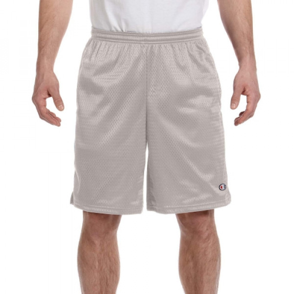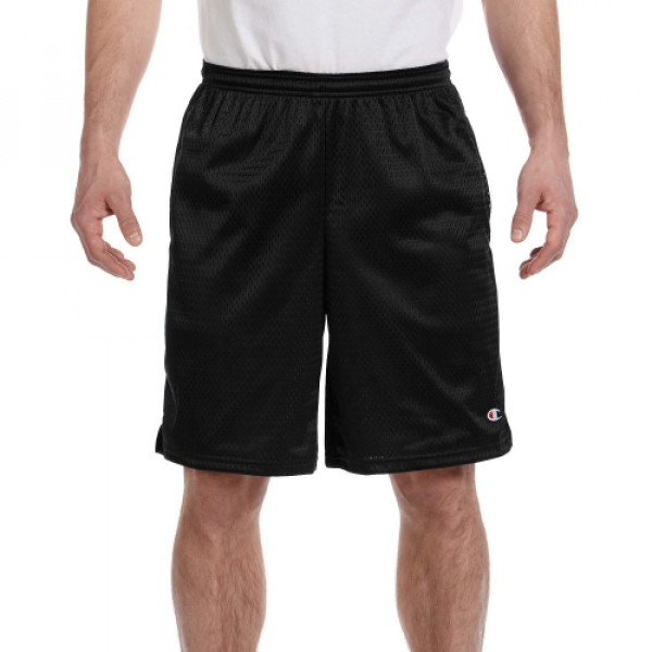 ::100% polyester mesh body::2.1 oz., 100% polyester tricot lining::Full athletic fit::Multi-needle elastic waistband with inside drawcord::Side seam pockets::9" inseam::“C” logo at left hem