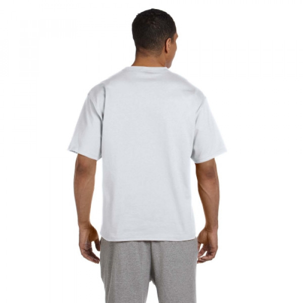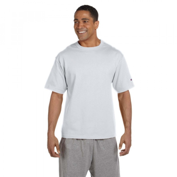 ::100% cotton::Silver Gray is 99% cotton, 1% polyester::Oxford Gray is 90% cotton, 10% polyester::1" bound ribbed crewneck::Deep armholes::Double-needle sleeves and bottom hem::"C" logo on left sleeve