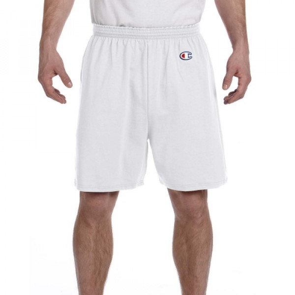 ::100% cotton jersey::Full athletic fit::Multi-needle elastic waistband with inside drawcord::6" inseam::“C” logo at left hip::Silver Gray is 99% cotton, 1% polyester; Oxford Gray is 90% cotton, 10% poly