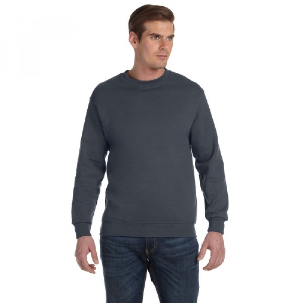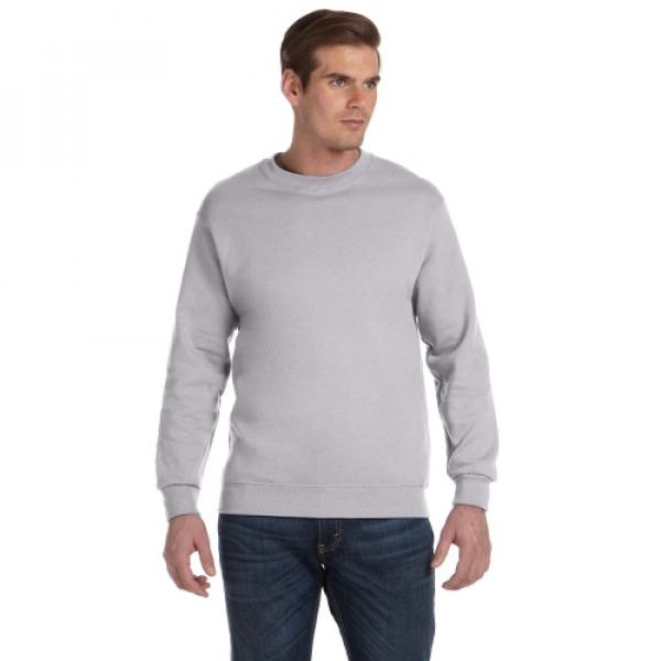 ::9 oz., 50% cotton, 50% polyester::DryBlend® Wicking Performance::Pill-resistant air jet yarn::Double-needle stitching throughout::Transitioning to a grey tear-away label. Inventory may be mixed.::1x1 ribbed collar, cuffs and waistband with spandex