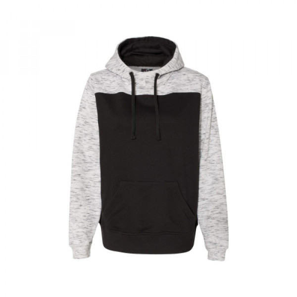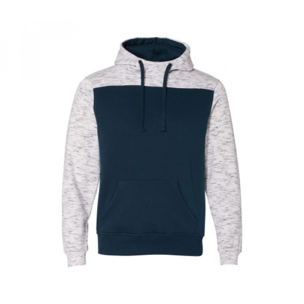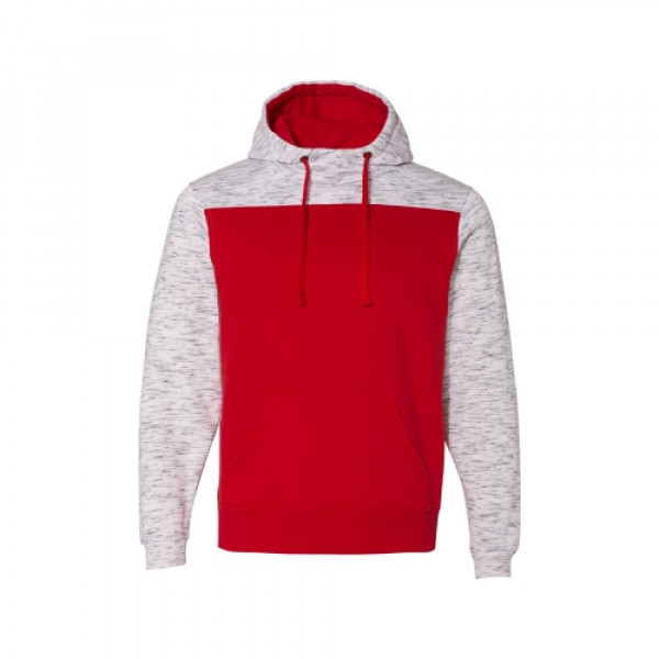 Fabric:::7.25 oz. 60% cotton, 40% polyester melange fleeceFeatures:::Scuba neckline::Contrast fabric on hood, shoulders, and arms::Front pouch pocket::Rib waist & cuffs