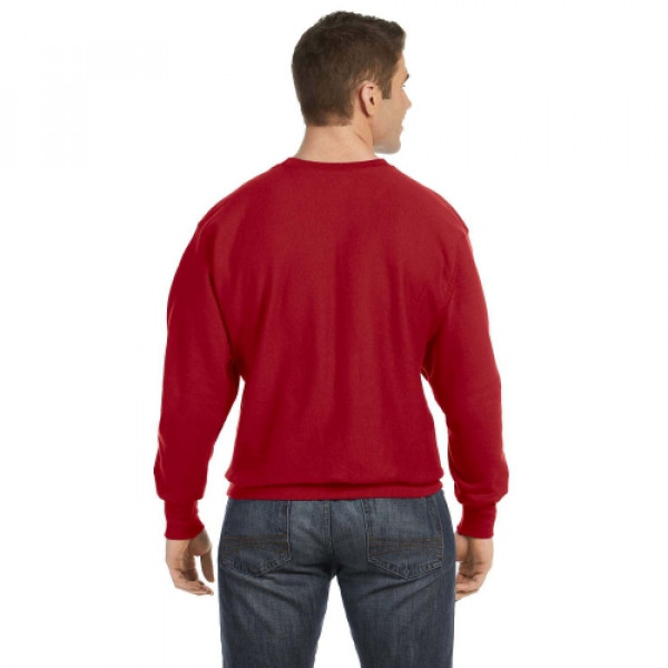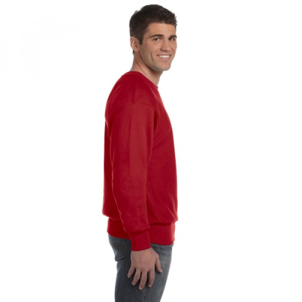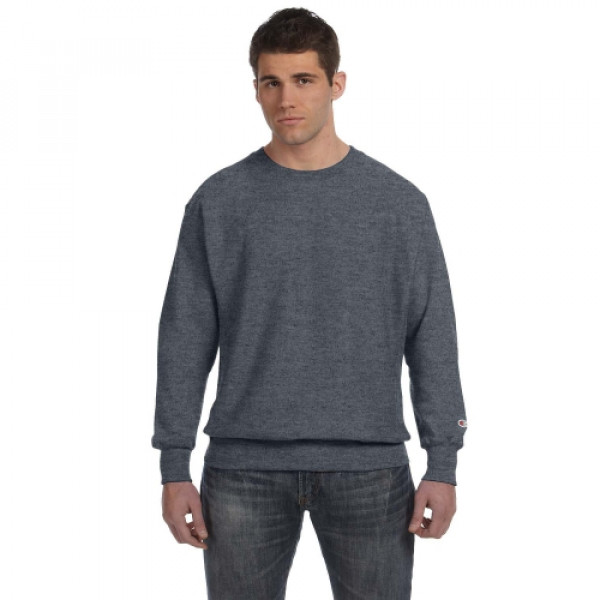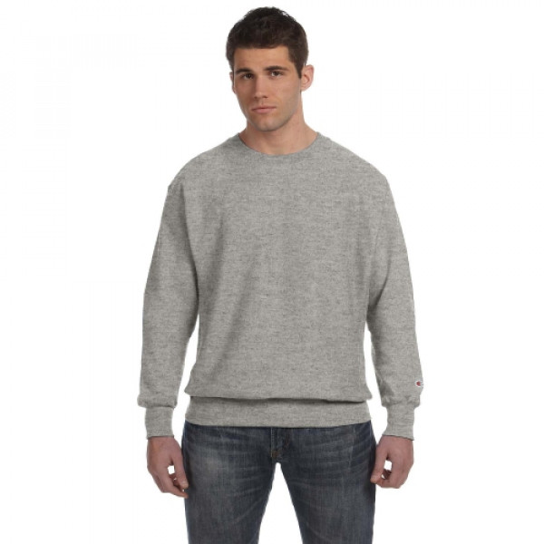 ::82% cotton, 18% polyester::Low shrinkage::Four-sided sewn down label::3¾" wide 1x1 ribbed knit cuffs::“C” logo at left cuff::1x1 rib at underarm, sides and bottom hem::Silver Gray is 80% cotton, 20% poly; Oxford Gray is 78% cotton, 22% poly