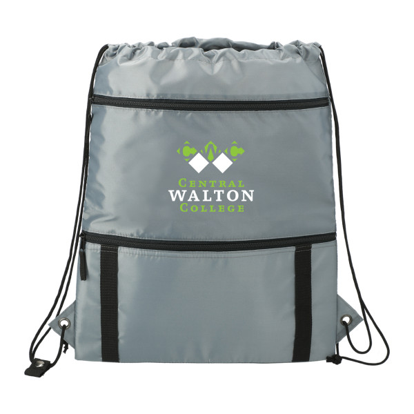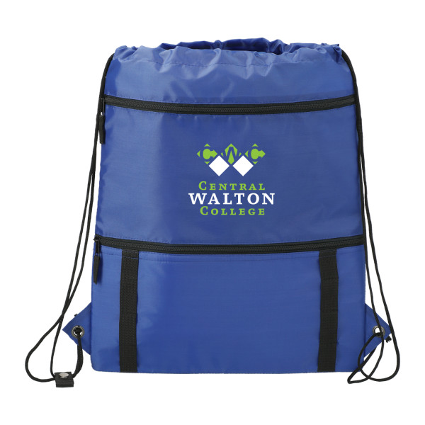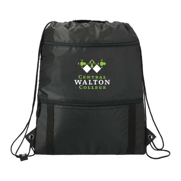 This drawstring features a cinch closure main compartment on the top, and a zippered insulated pocket on the bottom The daisy webbing chains are perfect for clipping your carabiner to.Details