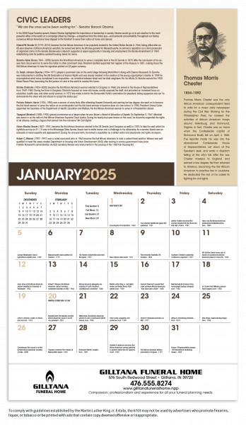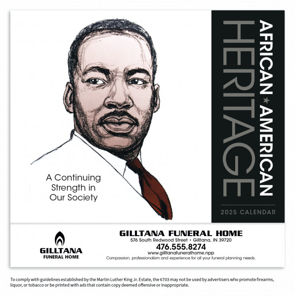 Celebrate the accomplishments of outstanding African-Americans with this detailed, educational calendar featuring Martin Luther King, Jr.