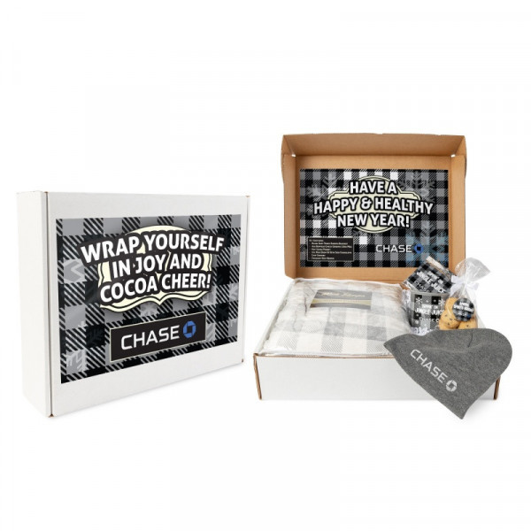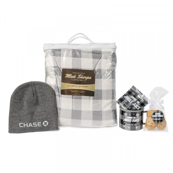 The All Bundled Up Gift Set is the perfect way to stay cozy and warm during chilly days. This thoughtfully curated set includes a selection of comforting essentials, from a plush sherpa blanket to a stylish knit beanie, a charming buffalo check mug, and delicious treats to enjoy. Packaged in a fully customizable mailer box, this set makes a great holiday gift, corporate giveaway, or appreciation package.