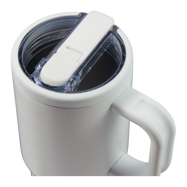- Flip straw lid with built-in cap for easy, hygienic sipping