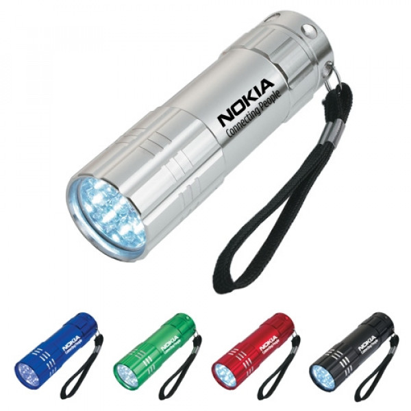 Shed a light on the subject with this portable, high powered flashlight.::9 White LED Lights::Push Button On/Off Switch::3 AAA Batteries Included