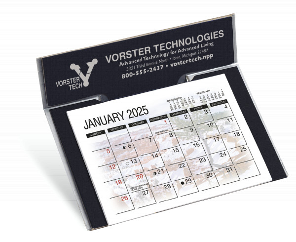 This eye-catching desk calendar brings vibrant color and scenic beauty to any workspace while keeping important dates front and center. Compact yet impactful, it’s a practical promotional product that can be custom branded for year-round visibility. The December cover page makes it ideal for early distribution, ensuring it’s appreciated from the start.