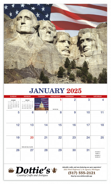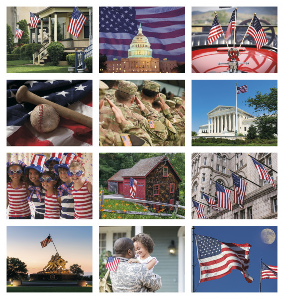 This 13-month calendar bursts with patriotic spirit. The FSC® label means that the materials used for this product come from well-managed FSC®-certified forests and other controlled sources.
