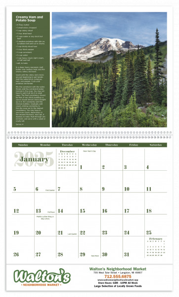 This calendar is pleasing on many levels with beautiful images and delicious recipes from across the United States.