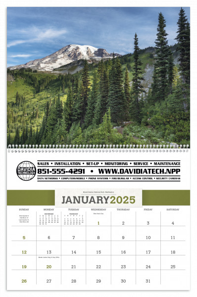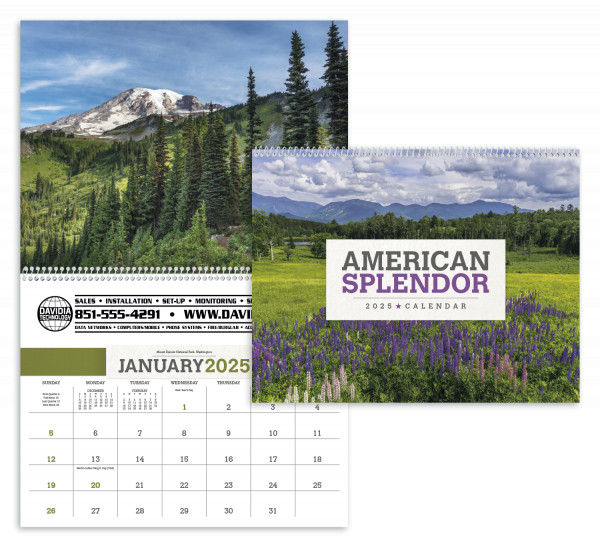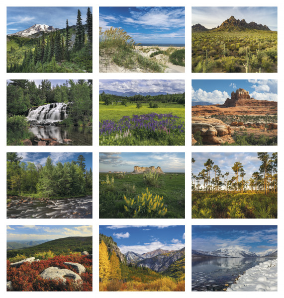 Dazzling scenery brings the outdoor world directly to a home or office. With colorful photographs, this calendar captures the senses. This theme is perfect for any business.
