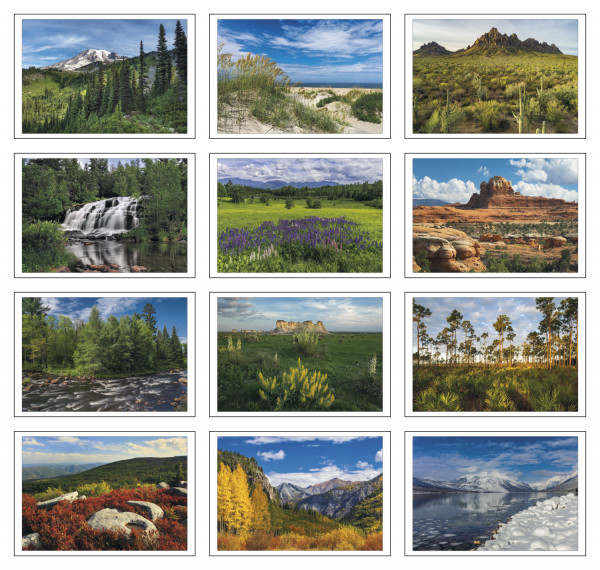 Always popular, this handy calendar features 12 beautiful photographs and a convenient storage pocket each month.