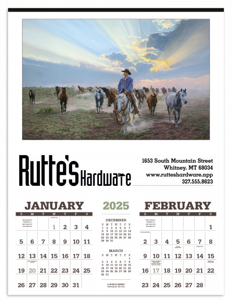 Artist Tim Cox brings the American West to life with his artistic style. Many businesses and restaurants can incorporate this calendar into their western theme. They can also use it to reinforce their image.