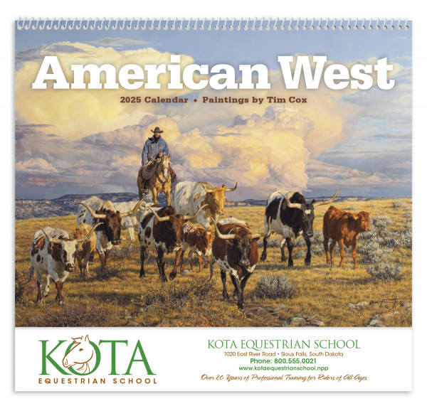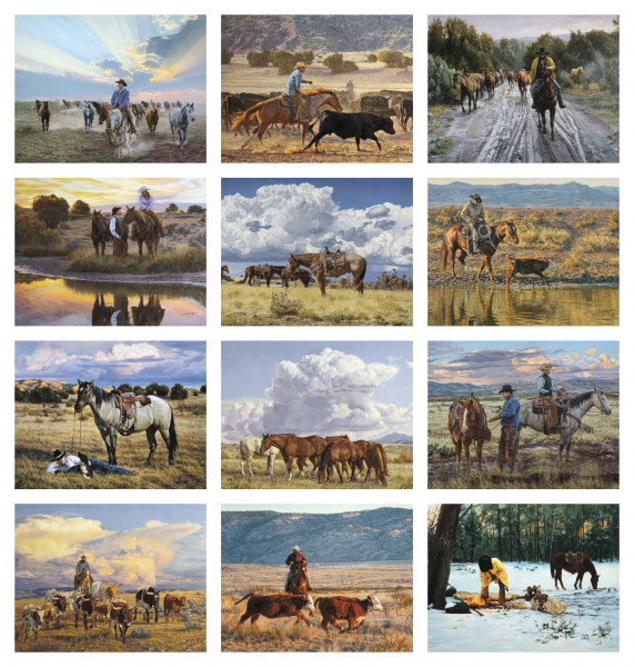 Saddle up with cowboys on a 12-month ride through the art of Tim Cox in this calendar.