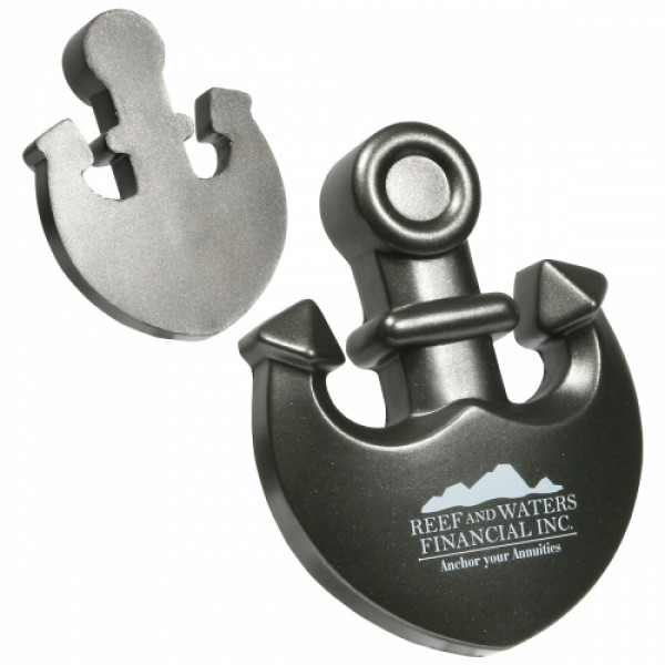 Polyurethane Anchor shaped stress reliever with a metallic finish.