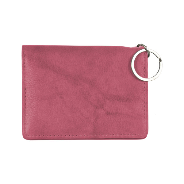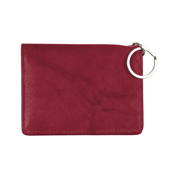 The Andrew Philips® Leather ID Holder is crafted from full-grain leather and features interior card slots and an outside window with a thumb slide. It has a hook and loop tape closure and a metal keyring. Each piece is inserted into an elegant, high-quality gift box before shipping. The dimensions are: Width: 4.25" and Height: 3.25".