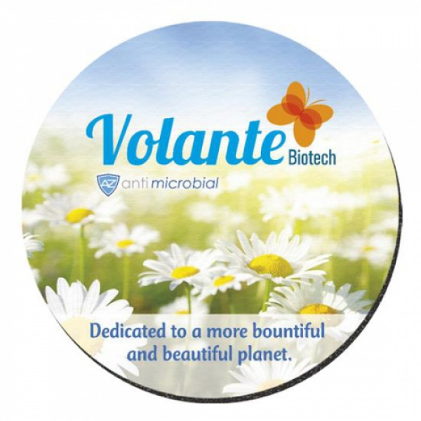 This popular round mouse pad vividly displays your message with 4-color process imprint while the antimicrobial preservative incorporated into the fabric helps protect the surface and keep it cleaner.