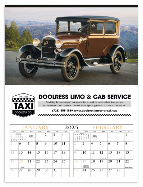 Classic, collector and antique cars, along with a brief description of their history, make this calendar an excellent gift. It offers ample writing space, and personalization is available.