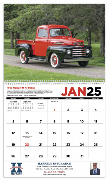 Classy and powerful antique trucks get the job done with style in this calendar.