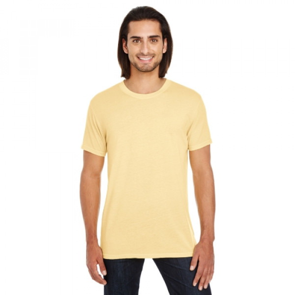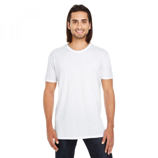 ::Fabric:::4.3 oz., 60% combed ringspun cotton, 40% polyester::Navy and Black are 100% Cotton::Features:::Preshrunk, CVC fabric with soft, smooth finish::32 singles::Retail fit::Side-seamed::Tear away label