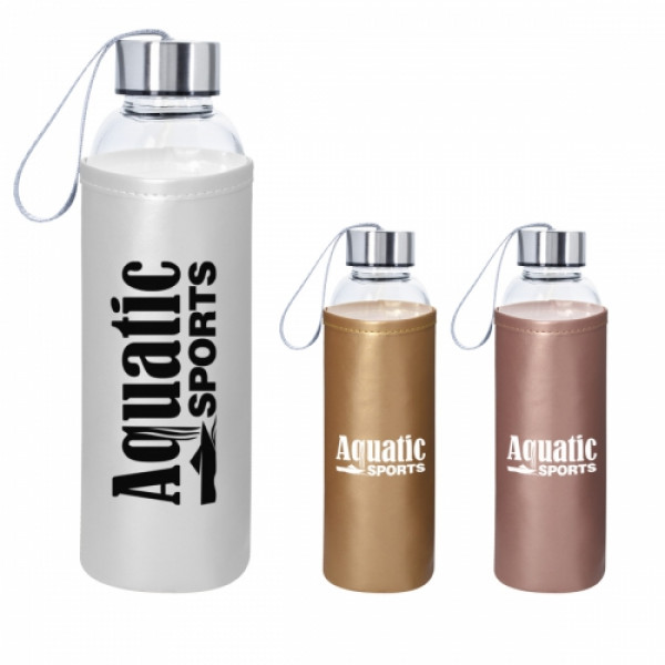 Aqua Pure Glass Bottle with Metallic Sleeve - 18 oz.