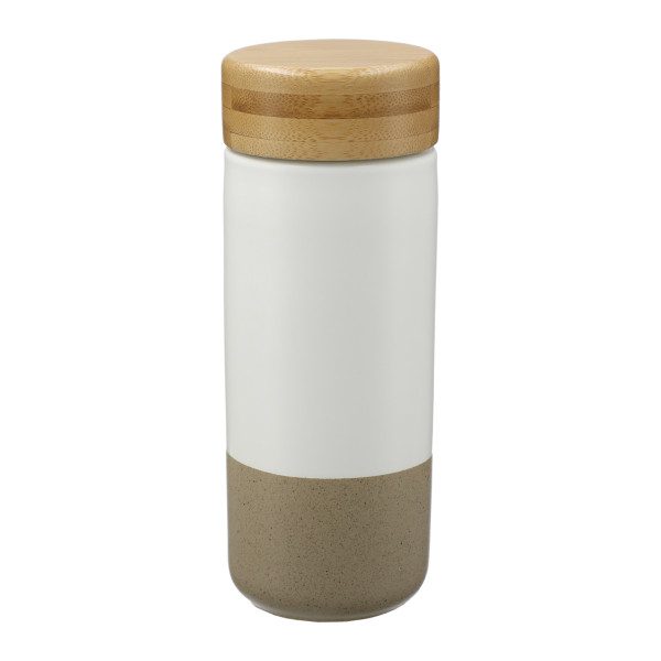Double-wall ceramic construction helps prevent condensation on the outside of the tumbler. The spill-resistant, screw-on lid is made from FSC-certified bamboo. Recommended hand wash only. Please note due to the color of the clay, some mugs may vary in color.Details