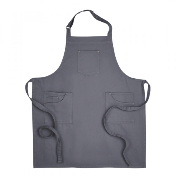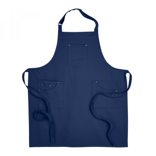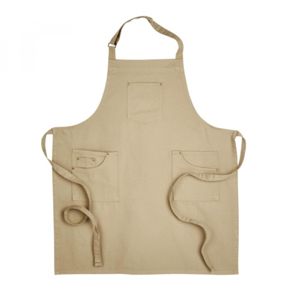 Fabric:::8.3 oz., 100% cotton twillFeatures:::chino style stitched pockets with rivets::gun metal eyelets secure 35" self fabric ties::top centre pocket::neckband with buckle and adjustable snap button fastening::34"L x 28"W::Oeko-Tex® Standard 100 certified::WRAP certified