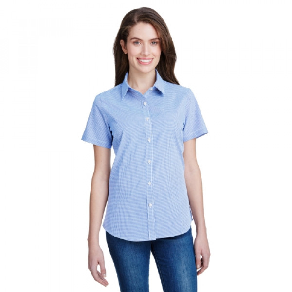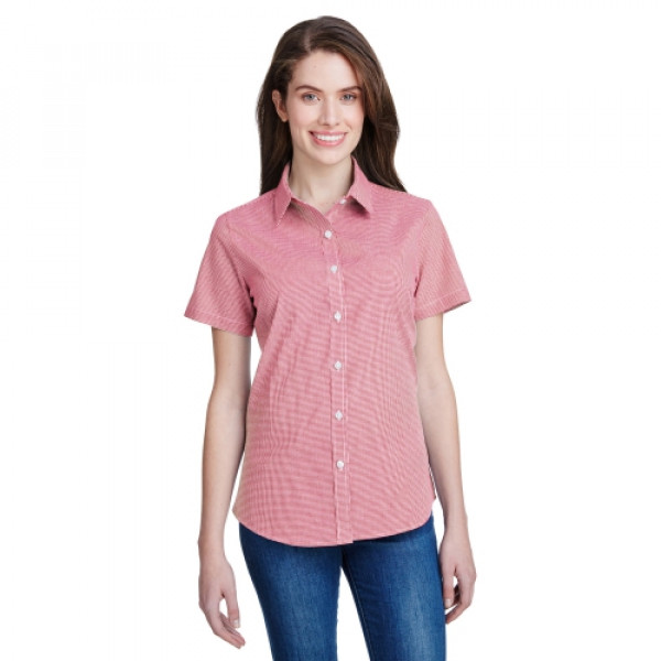 Artisan Collection by Reprime Women's Microcheck Gingham Short-Sleeve Cotton Shirt