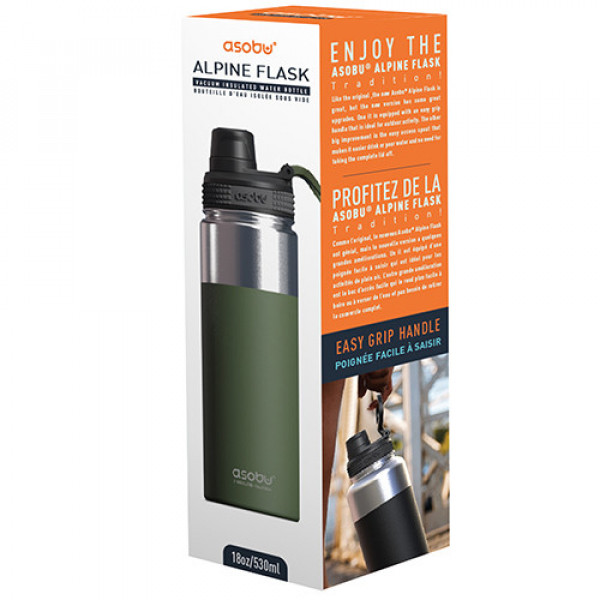 The ASOBU® Alpine Flask Bottle - 18 oz. takes hydration to the next level with upgraded features for ultimate convenience. Designed for outdoor adventures, this flask now includes an easy-grip handle for effortless carrying and an improved easy-access spout for smooth pouring and drinking without removing the entire lid. Whether you're hiking, traveling, or commuting, the Alpine Flask keeps your drinks at the perfect temperature all day long.