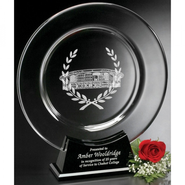 The magnificent crystal plate on top of the royal black glass base gives new meaning to any recognition experience. Make a lasting impression by choosing the Astoria Plate for an upcoming recognition event.