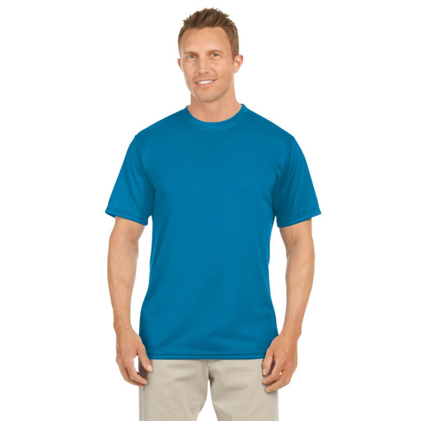 The Augusta Sportswear Adult Wicking T-Shirt is a lightweight, high-performance tee designed for comfort and durability. Made from 100% polyester wicking knit, it efficiently pulls moisture away from the body, keeping you dry during workouts or daily activities. The modern fit and feel, combined with a self-fabric collar and set-in sleeves, ensure a comfortable and stylish wear. Double-needle stitching on the collar, armholes, sleeves, and bottom hem adds to its durability. The tagless, non-branded label enhances comfort, and the Color Secure® technology helps prevent dye migration, maintaining the shirt's vibrant color. Available in a wide range of sizes, this t-shirt is perfect for sports teams, corporate events, or casual wear.