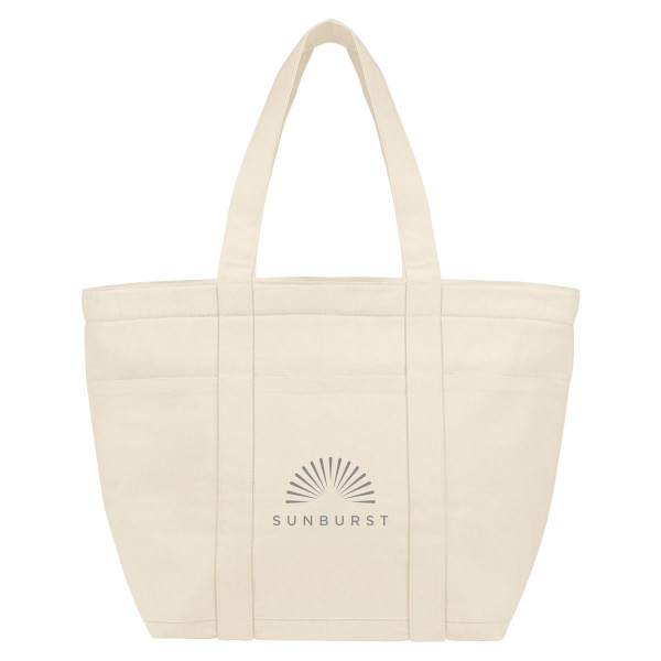 This eco-conscious promotional product offers both style and sustainability, making it a great choice for custom branding. Crafted from a blend of recycled cotton and polyester, it combines durability with eco-friendly appeal. With multiple pockets and insulation for keeping items cool, it’s ideal for picnics, workdays, or casual outings while showcasing your logo or design.