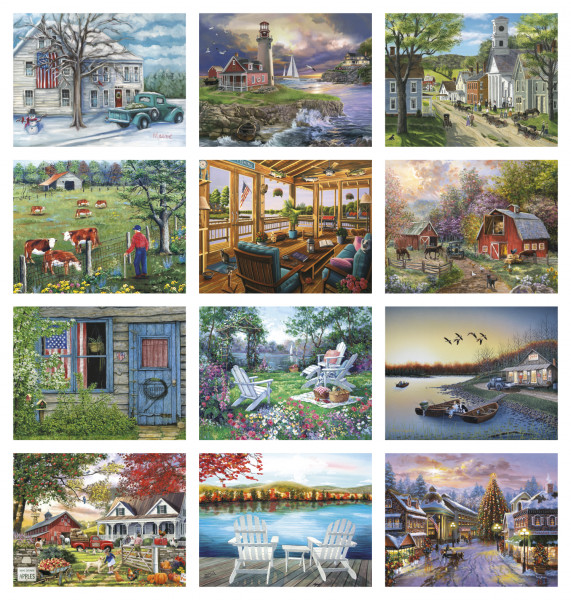 The quaint artwork in this 13-month calendar captures scenes ranging from bustling cities to tranquil pastures. The FSC® label means that the materials used for this product come from well-managed FSC®-certified forests and other controlled sources.