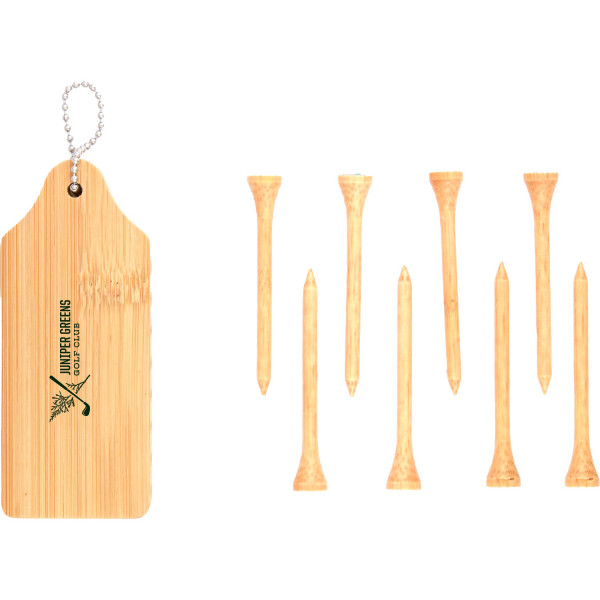 The Bamboo Golf Buddy includes 8 durable 2.75” golf tees that fit snuggly inside the bamboo tee holder. It has a compact design that makes it easy to toss in your bag, providing the perfect addition to your next day on the green. Secure the golf tees to any bag using the included carrier chain. Beginners and experienced golfers alike are sure to appreciate this useful accessory. Tees and tee holder are made from FSC-Certified bamboo sourced from responsibly managed forests.