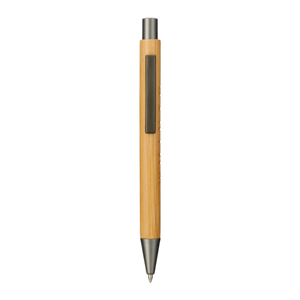 The Bamboo Ballpoint features a 100% bamboo barrel with gunmetal accents.