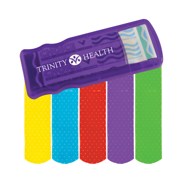 Stay prepared for life’s little scrapes with this compact and refillable bandage dispenser. Featuring brightly colored, latex-free bandages, it’s a practical and budget-friendly choice for giveaways, healthcare promotions, or branded safety campaigns. As a customizable promotional product, it offers a great way to keep your logo handy while providing everyday usefulness.